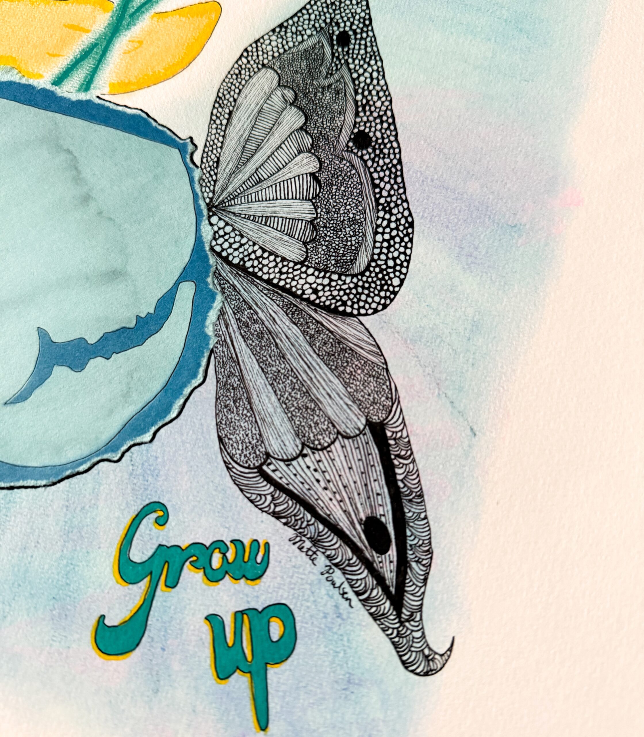 Dette værk minder dig om, at de sider, du undertrykker, også er en del af dig. Når du tør se på dem, kan du finde vækst og frigørelse. Sommerfuglen står som et tegn på transformation, mens mælkebøtterne viser livets evne til at bryde frem – selv fra det mest uventede sted.